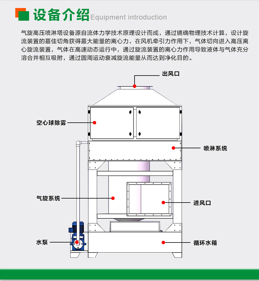 雙級(jí)氣旋噴淋塔設(shè)備特點(diǎn):