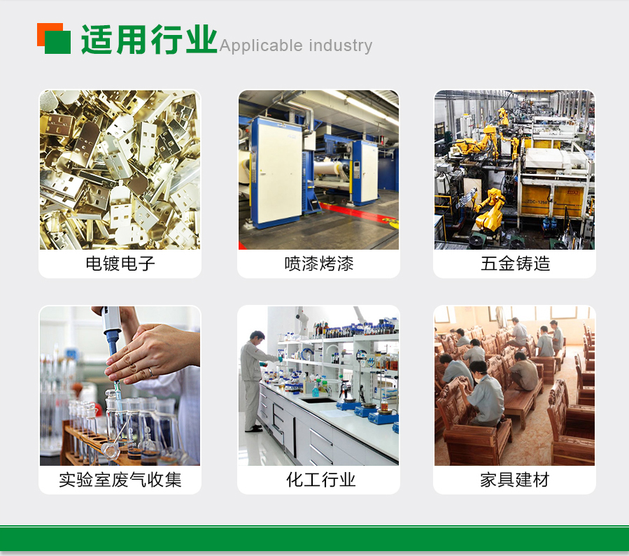 五金、噴漆、切割、半導(dǎo)體、冶金等行業(yè)生產(chǎn)過(guò)程中產(chǎn)生的含塵含味氣體,特別適合粉塵、廢氣等濃度大、溫度大、濕度大、易燃、易爆等工況。