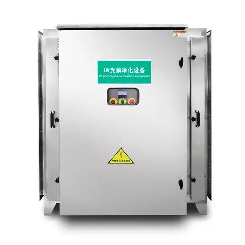 uv光解除臭設(shè)備:有機(jī)廢氣氣體處用排風(fēng)設(shè)備輸入到UV光解設(shè)備后,運(yùn)用高能UV紫外線光束及臭氧對惡臭氣體進(jìn)行協(xié)同分解氧化反應(yīng),使惡臭氣體物質(zhì)其降解化成低分子化合物、水和二氧化碳,再通過排風(fēng)管道排出室外。