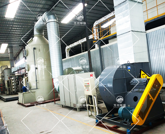 根據廠方提供的資料及現場勘察的情況。其噴漆廢氣的來源主要為無塵噴漆車間內的5條自動噴涂線。在生產過程中有噴漆,該工序產生了一定量含三苯有機廢氣和噴漆粉塵,該廢氣不僅對環(huán)境造成污染,而且對人體有較大的危害作用,同時也破壞了周邊的環(huán)境,造成了不良的影響,需進行處理后排放。我們工程師分析了該廢氣的特點和以往的案例經驗,采用了“水簾柜+噴淋塔+活性炭吸附塔”這套解決方案。