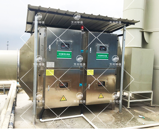 由于廢氣中含有一定的顆粒物,因此廢氣首先進(jìn)到噴淋塔在進(jìn)一步除去顆粒物和水溶性物質(zhì),而后進(jìn)入到除霧器,過(guò)濾未完全凈化水分,而后進(jìn)入U(xiǎn)V光氧凈化器,最后再進(jìn)行活性炭吸附裝置,該法具有處理效果高,運(yùn)行穩(wěn)定優(yōu)點(diǎn)。