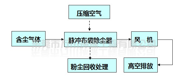 根據(jù)榮科公司的實際情況和以往的案例經(jīng)驗,我們技術(shù)人員依據(jù)國家及地方關(guān)于環(huán)保的法律和法規(guī)、工業(yè)企業(yè)設(shè)計衛(wèi)生標(biāo)準(zhǔn)(TJ36-79)、《廣東省大氣污染物排放標(biāo)準(zhǔn)》(DB44/27-2001)、《三廢治理工程技術(shù)手冊》廢氣卷,經(jīng)過對廢氣污染物和現(xiàn)有的處理技術(shù)的綜合分析,認為該廠所產(chǎn)生的粉塵適合采用干式除塵法,所以我們?yōu)闃s科公司設(shè)計了一套風(fēng)量為35000m3/h脈沖布袋除塵器。