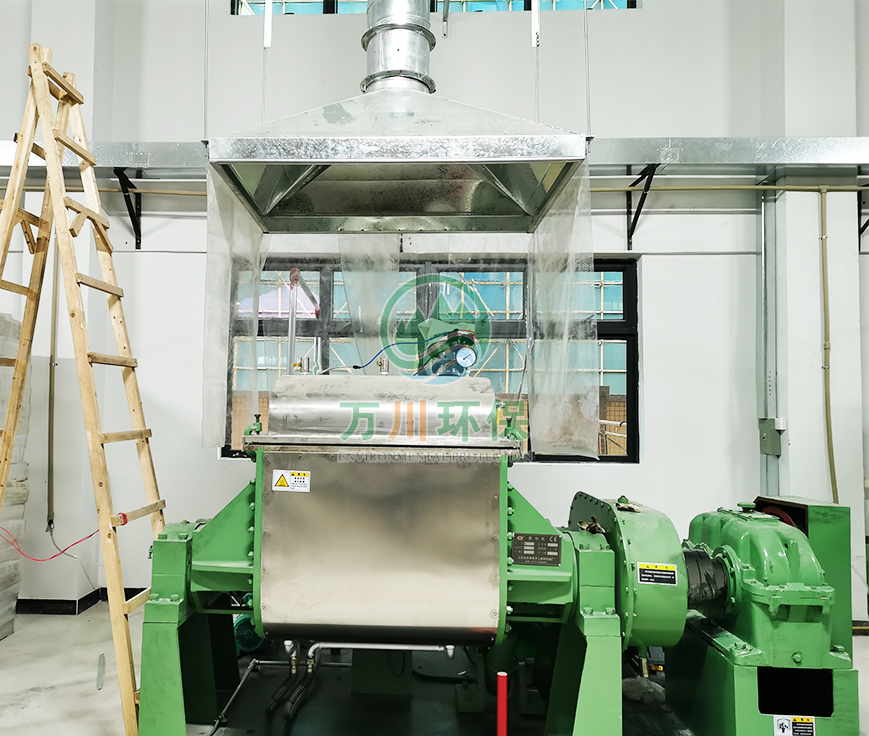 東莞某硅膠廠,成立于2003年,位于東莞市麻涌鎮(zhèn),主要從事高科技的按鍵油墨及特種有機(jī)硅產(chǎn)品的研發(fā)、生產(chǎn)、銷售,該公司中設(shè)有捏合機(jī)生產(chǎn)車間,在生產(chǎn)工序中有廢氣和粉塵產(chǎn)生,污染了生產(chǎn)環(huán)境。對此,我們?nèi)f川環(huán)保為該公司提供捏合機(jī)廢氣粉塵處理解決方案。