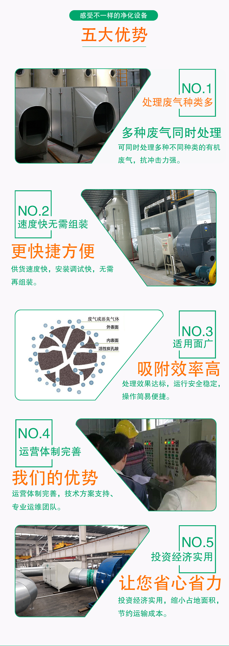 活性炭吸附裝置整體可采用PP、不銹鋼、鐵等材料制成,采用抽屜式的加炭方式,操作方便,占地面積小,安裝好即可使用,無需人工看管,做好清洗與換炭工作即可。
