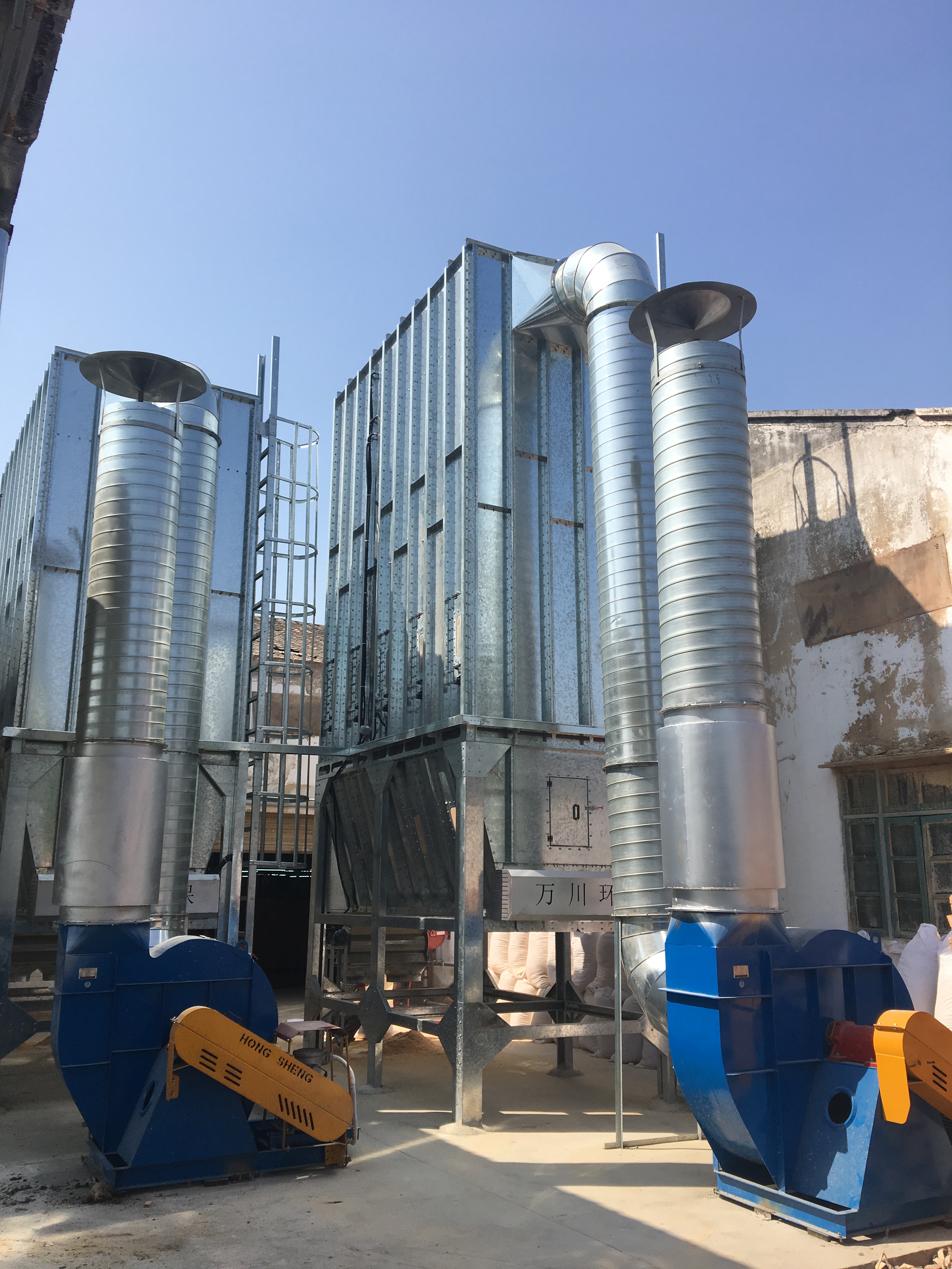 根據(jù)車間設(shè)備布置情況,由于木工機(jī)械吸塵口所需的風(fēng)量及風(fēng)壓風(fēng)速要達(dá)到要求,并預(yù)留一些風(fēng)量,因此我們采用過(guò)濾能力較強(qiáng)脈沖袋式除塵器,匹配相應(yīng)的排塵風(fēng)機(jī),達(dá)到最佳吸塵效果。