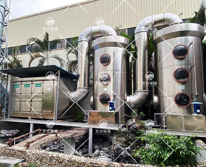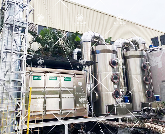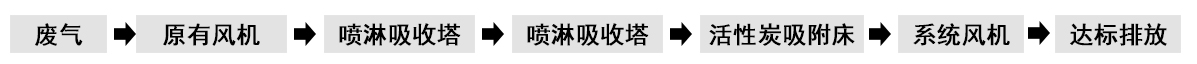 根據(jù)客戶需求和我司實地考察之后,最終采用‘兩級噴淋吸收法+活性炭吸附法’對其進行處理。采用水噴淋一方面可以降溫,另一位方面能夠讓水吸一部分的有機廢氣,降低后續(xù)活性炭吸附的負荷。
